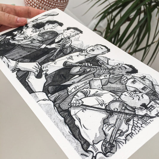 Epirus Mountain Art Print – Greek Landscape Illustration, Folk Music Scene, Fine Art A4
