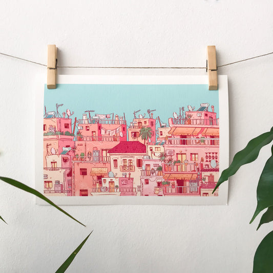 Athens City Art Print – Colorful Greek Cityscape Illustration (A4)