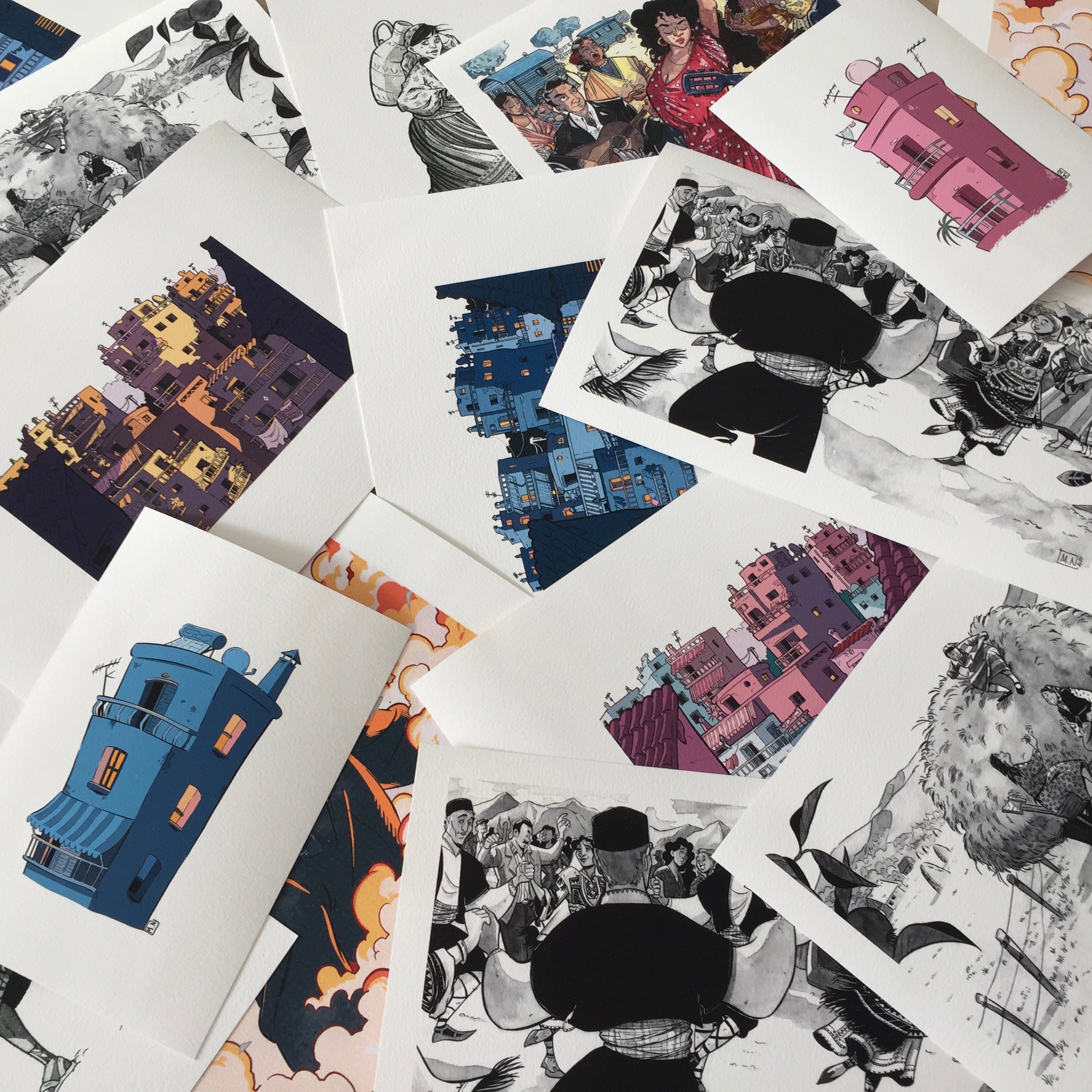 I only work with small local businesses ! All of my art prints are printed and hand-framed by Kanto Korniza, a Piraeus/ Livadeia based enterprise. My t-shirts, sweatshirts and tote bags are silk printed by Silk Bastards, an Athenian enterprise too. And for the others typographic works, I'll work with local print shop.