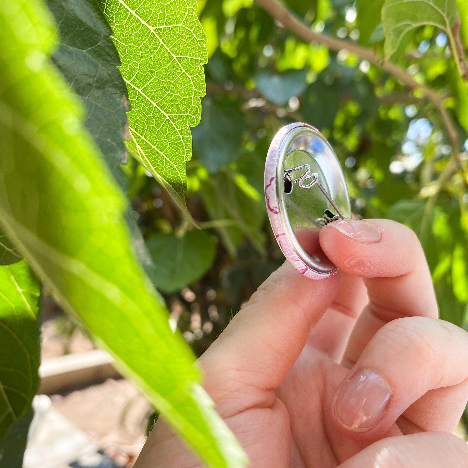 - The button pins are Tecre button pins made with a metallic shell, a pinned back and a matte laminated paper.
